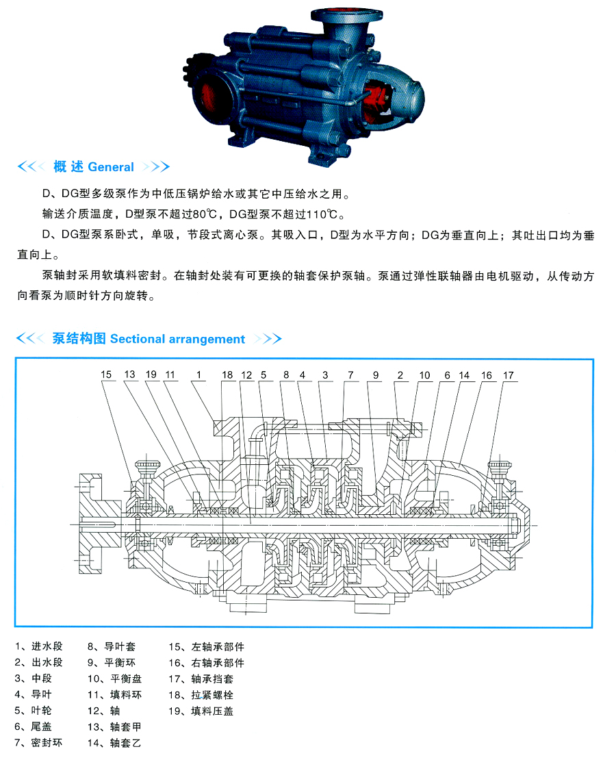> 産品系列 > 防爆卧式多級離心泵 鍋爐泵 > D、DG多級離心泵